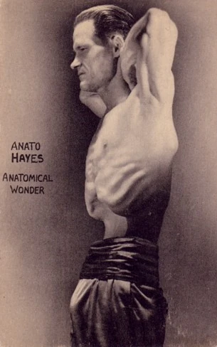 Ed Anato Hayes, AKA "The Anatomical Wonder," could suck his stomach in so far that it could touch his backbone. Note: the main Photo is Jean Hayes, who also performed under Anato Hayes brother of Ed "Anato" Hayes