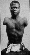 Prince Randian, real name unknown (October 12, 1871, Demerara, British Guyana – December 19, 1934, New York City, New York), AKA "The Living Torso," "The Human Caterpillar," "The Pillow Man," or "The Human Cigar," was born without arms or legs. Randion was in the movie Freaks. He crawled around and was able to roll a cigarette, light a match, and blow it out using only his mouth. He was brought to the USA by Phineas Taylor "P. T." Barnum, at the age of 18, which he stayed as an attraction for 45 years. He was married to "Princess Sarah." (allegedly a hindu woman, born circa 1872), he had a total of 5 children. For At Prince Randian As the Caterpillar Man he can't not Anything Between.